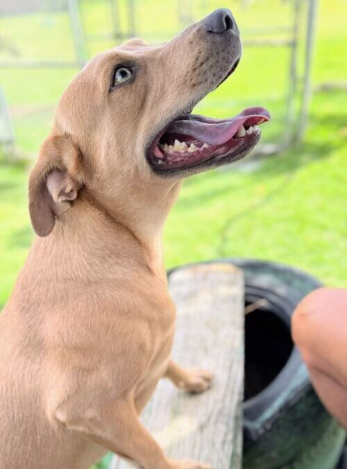 Adrianna doesn’t really like the rough and tumble of every day shelter life though. When the other dogs in her pen go out to play, she will often stay inside, preferring to play with a human. She really would be best suited to a home life. When meeting new people or new situations, especially noisy situations, she can be a little scared, but it doesn’t last long. It should be noted that Adrianna can jump fences if she wants to, so should not be left unsupervised outside or where she could escape. She needs a confident person to tell her all is ok, and she will thrive. Adrianna has low/medium energy and would be fine as an only dog, or could live with others. All in all, Adrianna wants out – and into a new life please.