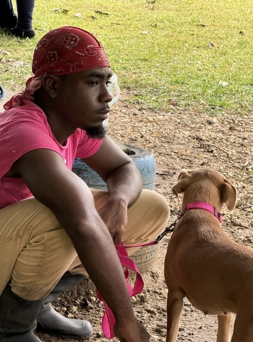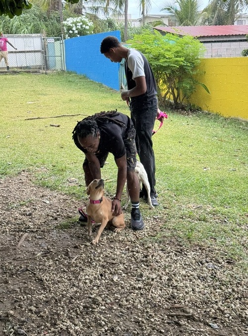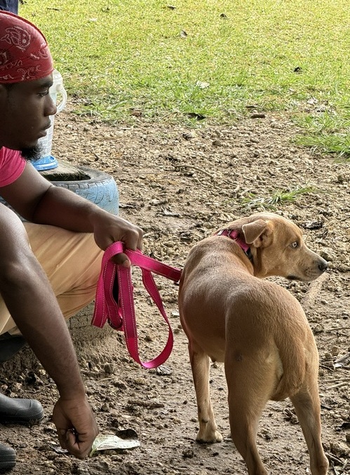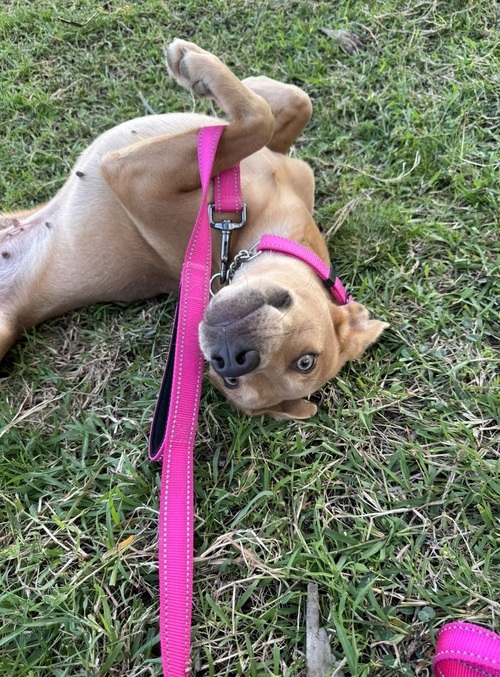 Adrianna has the prettiest eyes; hard to resist when she stares up at you! She is a friendly girl and enjoys going for walks, her leash skills are just fine and when out walking she’s not bothered by passing traffic.