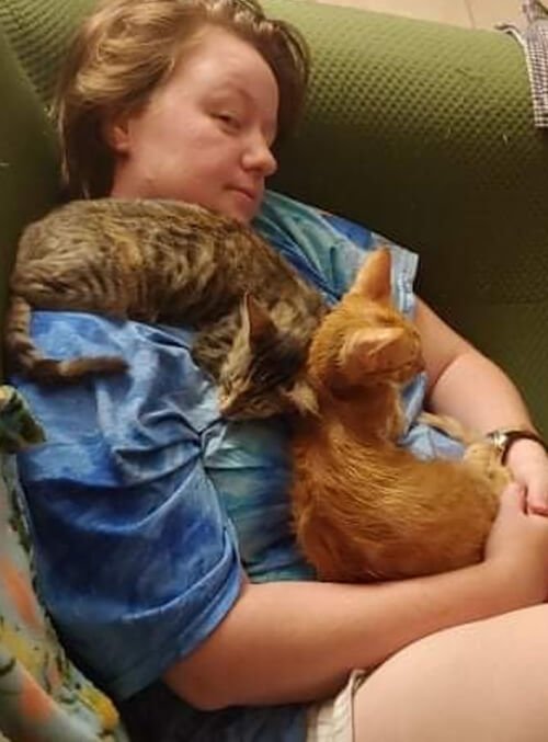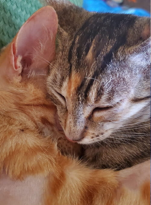 They are SUUUUPER affectionate snuggle bugs and have bonded really closely so we think they would need to be adopted together. They have been through so much. Of course they would have to live indoors, its all they know!