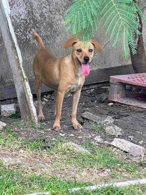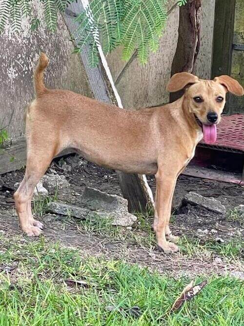 Look at this cheerful little girl, our Cheerio. She came to us with Porter and Axton.  They were living in a home where they were literally starving.  They were so thin and infested with ticks and fleas.  She is unrecognizable as the skeleton that staggered in back in April 2022.