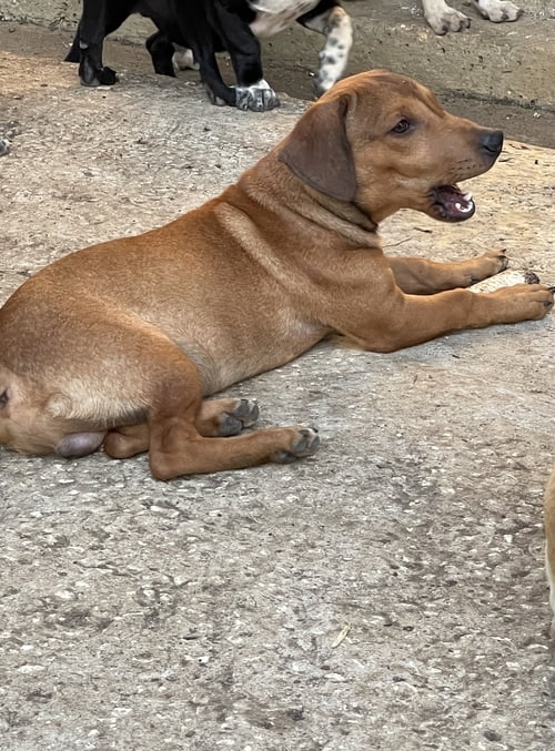All of these pups are shy. They were not socialized at all as young pups and kept in a dark shed. Since they have been with us they have been fostered at a stable yard and they have grown in size and in confidence, enjoying the fresh air and running about and playing. They still have a way to go in terms of their rehabilitation. They have never lived in a house and they have always been together. They are ready now to split up and move onto the next steps of their development.