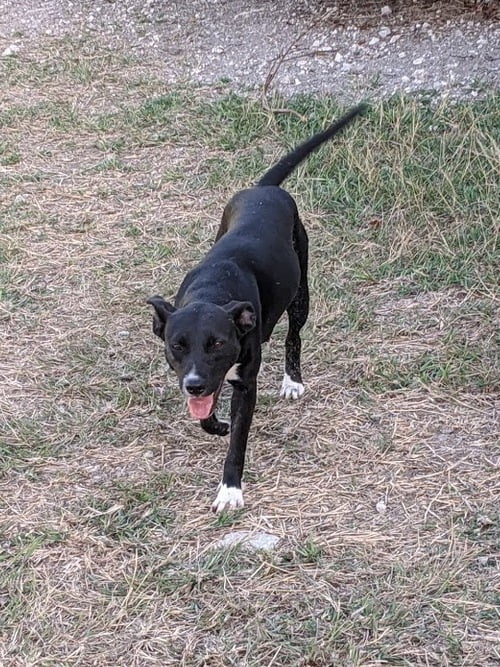 Dorie was very skinny and very shy when she arrived at Ocean Acres, rescued from a very unsatisfactory home.  She arrived with her 3 male siblings (all now adopted).  These days she is completely transformed into a lovely young dog.  She enjoys her daily walks and loves to meet new people and make friends.