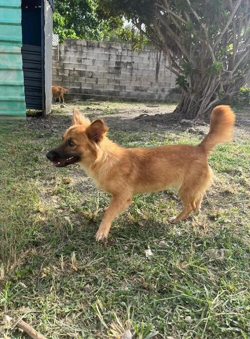 Icy was living a sad a lonely life chained to a dog house. We finally managed to rescue her, along with the only surviving pup from her last litter (John). Icy has had many litters of pups and not a lot of care in her life. When she first arrived she was a little timid, but she’s over that now and runs up to greet us. She loves spending time with other dogs and gets along with everyone. She’s playful and medium energy and would fit into most homes.