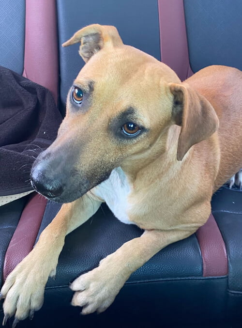 Ivy is a lovely and very confident girl. She was found roaming the streets by one of our volunteers. She is small-medium in size. Her disposition is sunny and she gets on well with all other dogs, she is wonderfully social. She’s a very easy going dog all around – she’s easily pleased, it doesn’t take much to make her happy! She’s not shy, very outgoing, great with people and knows how to get along with new furry friends, and that adaptability means she could do well in either a single dog home or one with other dogs. Her confidence can make her a tad bossy with other dogs sometimes, in that she can get a little pushy for pets from people and will surge forward to compete for attention, but not in a hostile or aggressive way at all. She just knows what she wants! She will be very easy to find a home for, she will fit in beautifully.