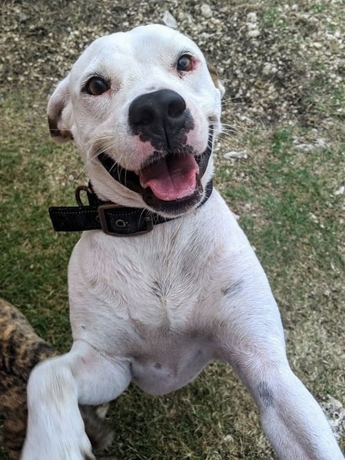 Jazz is a very happy and friendly dog. He loves to be with people. He has lived in a house and is house trained. He is lively and lots of fun and he likes to run and jump. He loves long walks, but also loves to chill out on the couch! He is always smiling. Jazz prefers to be a house dog than to be left outside alone, he can jump over fencing that is not 100% secure and high – if kept outside special consideration would have to be given to this.