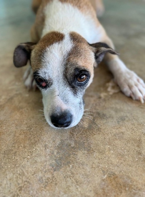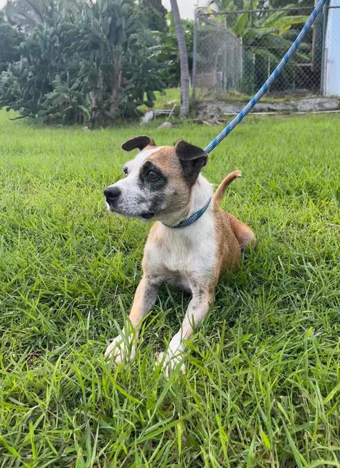 In spite of a loveless life so far, Journee remains kind, gentle and hopeful that someone will love her. She is medium to low energy and would be fine as an only dog. She seems to not like our cats. Journee walks nicely on a lead and loves to be around people. She is undemanding and calm, and absolutely adores pets and cuddles.