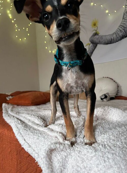 Little Koa was found lost and all alone on the beach. Lucky for him he has managed to find a foster home, but now needs his forever home. He’s a cute little guy, who has two modes, 1) sudden high bursts of energy and 2) couch potato ! He likes to play and loves to shake soft toys. He is still quite puppyish in his behavior, and like all youngsters would benefit from some lessons. Koa would bring a lot of joy, he’s not shy and would fit in anywhere. He also comes with extra large ears! Koa is a ‘smiler’ and is happy to show you his pearly whites – don’t mistake it for him being snarly, it’s his happy, goofy grin!
