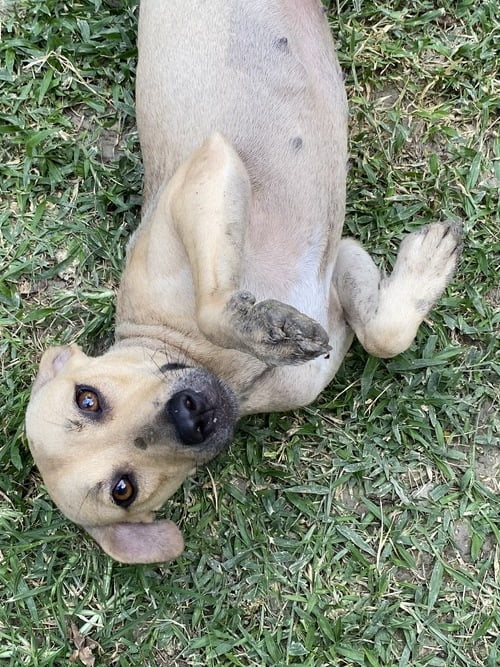 Luna currently lives with two other dogs and the three of them are always playing and running around.