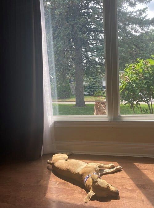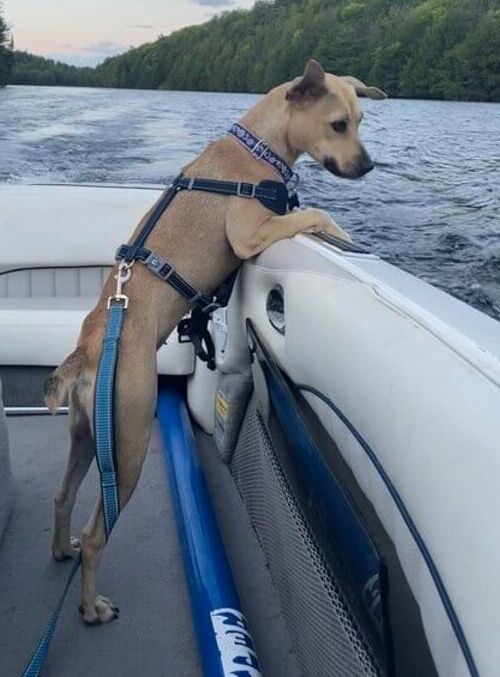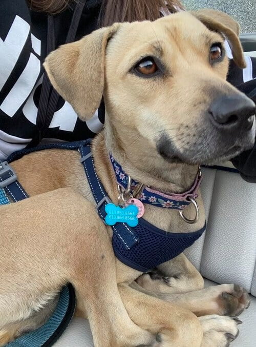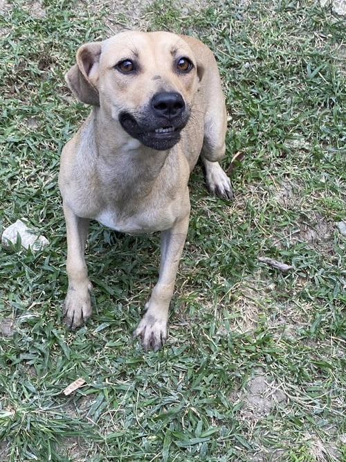 Luna made her way to us by way of one of our neighbours. She appeared on their property one day and never left. We assume she was dumped in the area and wandered to where she could find food. Our lovely neighbours worked to gain her trust and brought her to us once they were able to leash her. She came dirty and full of ticks but eager to love. We took care of the infestation she had, gave her food and a warm place to sleep and she very eagerly accepted. Now, she comes running when she sees you, hoping for play and snuggles. She is a very affectionate dog who loves walks and play time. She has shown no aggression at all towards other dogs, or around food.