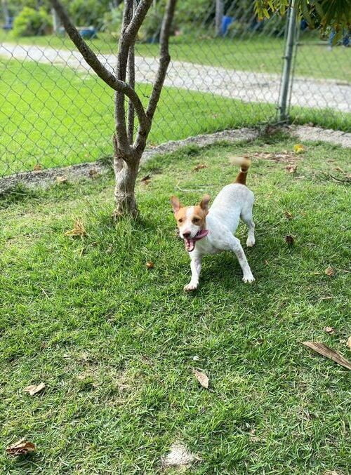 Manchester is a typical JRT; she’s intelligent, active and fun loving. She gets on great with other dogs, large and small and has lived as part of a family for a long time, with 2 other Jack Russell’s (Arsenal and Everton) and a Rottweiler (Sheera). She likes people and would make a lovely family pet. Her humans left the country in September 2021, so sadly Manchester and the other dogs she lived with were left homeless.