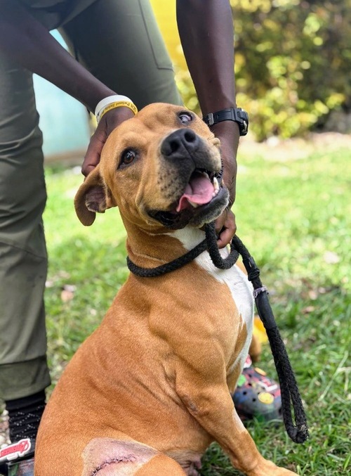 Nola, however, survived. With care, she gained weight, grew strong, and never lost her joyful spirit. Today she is a stunning, fit, and healthy dog who greets everyone with happiness.