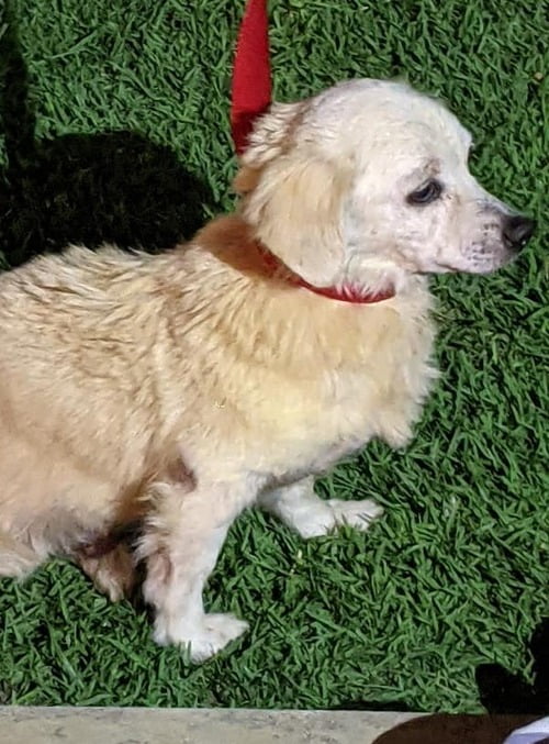 Rosa hasn’t experienced any home comforts before. She’s lived a life outside with a dog box for shelter but is adapting well to indoor life and all the new things around her.  She’s had a lot of puppies in her time and it’s a condition of adoption that she must be spayed. We guess her age to be around 7. Please; If you can foster or adopt please contact us.
