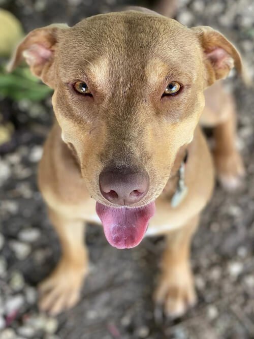Slinky is a dog desperate for a home and to be with people. She would be best suited in a home with a high fence and big yard. She is another dog that would excel in training, as she is very much a people dog and always eager to please. We feel she would be one of those dogs who climbs into your lap when you’re on the couch and that it would be absolute heaven for her. She’s never experienced a couch before, but we feel she would enjoy it.
