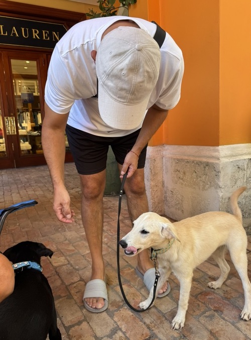 Stellan was rescued as a puppy along with his 4 siblings. Sadly one pup died, one is already adopted and, at time of writing, we still have Star Girl and Star Boy. They are all adorable, confident youngsters. They are all well socialised, walk nicely on a lead and are ready to move on to their forever homes. They get on well with other dogs and could join a family with other pets, or alternatively could be the only pet. They are scheduled to be neutered in early August.