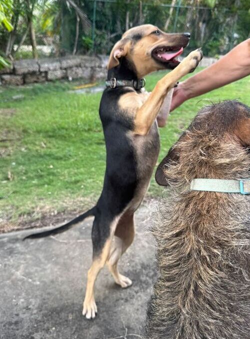 Sutton is one of 9 pups rescued along with their mother, Sue, from despicable living conditions. Their mother was on a short chain and had to give birth in mud. The poor puppies were struggling and she couldn’t move far to look after them. We took them in and momma Sue did a great job, all 9 babies survived and are thrived. They are now more than ready for their new lives. They are lovely youngsters and would make wonderful additions to any family and would fit into any home really well. They are still young so some puppy behavior is to be expected, and some training and socialization is needed, but they are confident and ready to embrace their new lives.